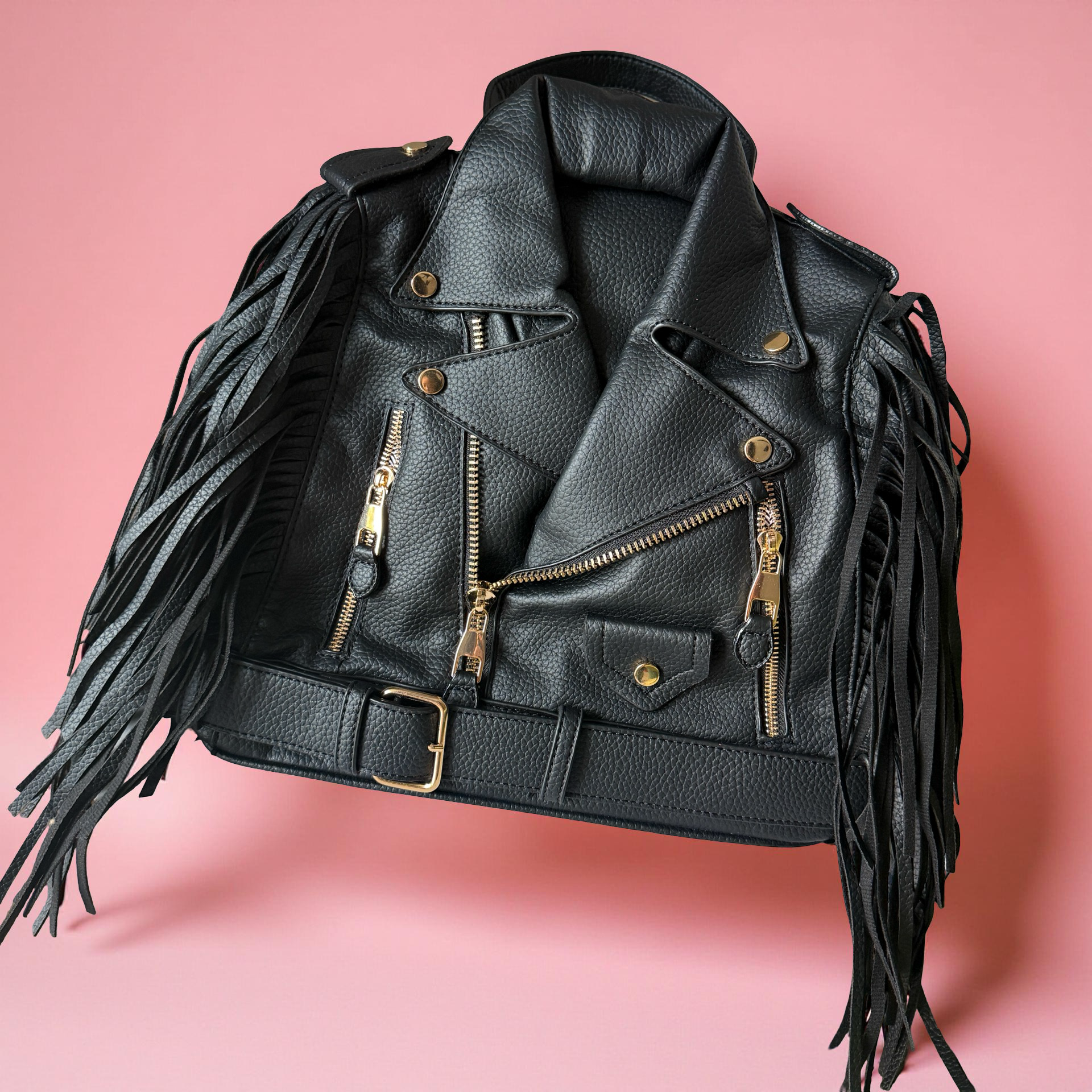 The Bad & Bougie Bag is not your average handbag, it’s a statement piece. Designed to mimic a moto leather jacket with bold zippers, belted details, and dramatic fringe, this bag brings pure rocker-chic vibes. Convertible straps allow you to wear it as a backpack or tote, making it as versatile as it is fierce. Perfect for nights out, festivals, or whenever you want all eyes on you.